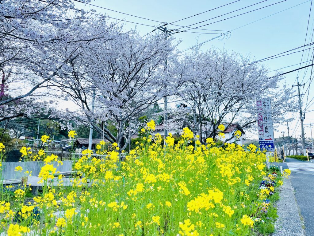この季節に見ることができる、桜と菜の花の風景です。