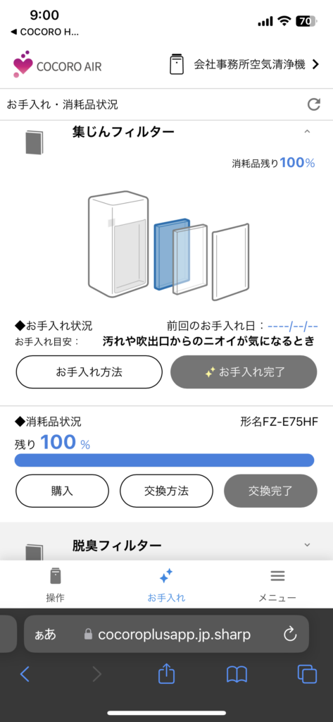 今回はシャープ製の空気清浄機を購入しましたが、1つのアプリで