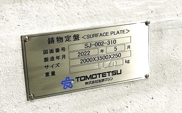 現在は弊社定盤においては銘板を取り付けて、製造年月や図面番号、