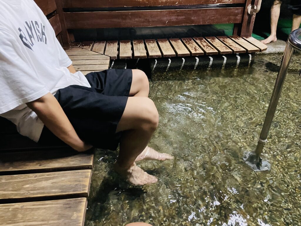 20分程度、足湯でゆっくりとしながら待ちます。