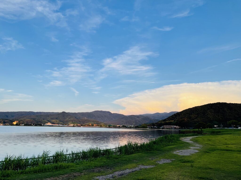 東郷湖という湖に隣接していて、景色もとてもきれいです。