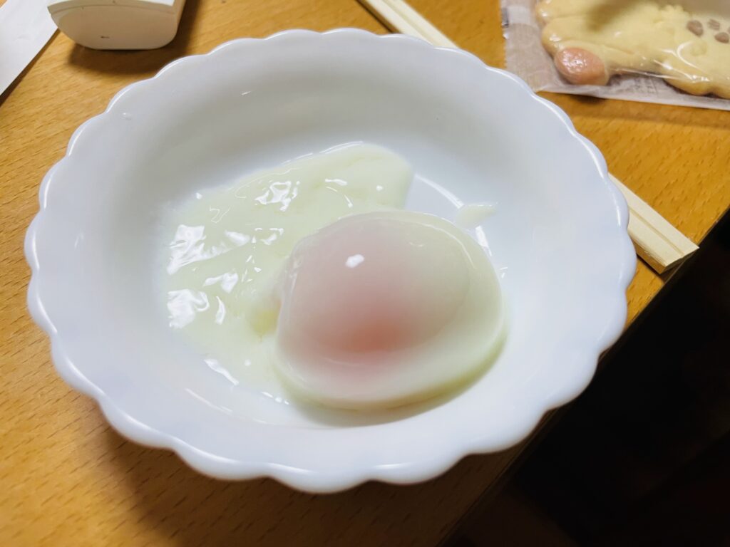 出来上がった温泉たまごは絶品で、白身はトロッと、黄身はもっちりと