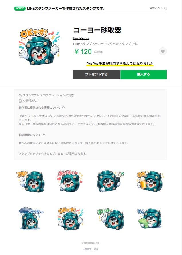 今回、そのコーヨー砂取器のLINEスタンプが完成し、販売を開始いたしましたので、定盤.comでもご紹介させていただく事にしました😌✨