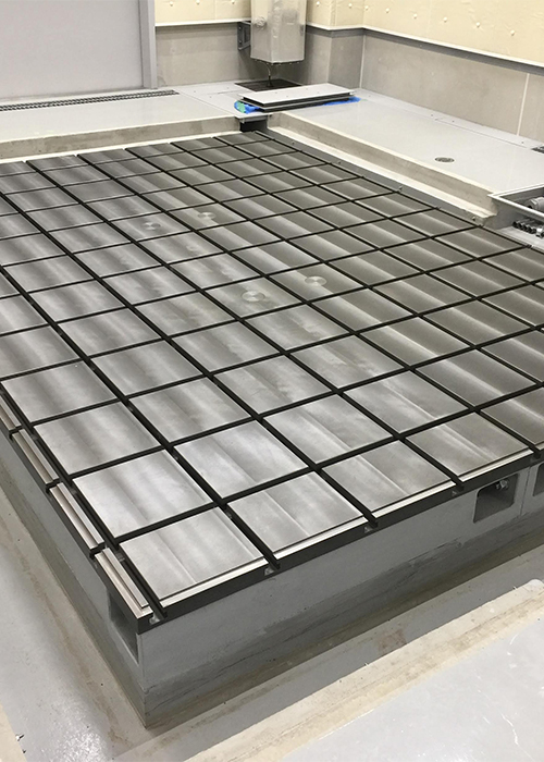 研究開発における試験や製品検査の際、安定した条件での測定を行うためには、 きれいな平面の土台が必要となります。また日々の製造工程でしっかりと治具や 試験機を固定する為にも固定機構を有した頑丈な土台が重要となります。 それらの研究・開発・製造部門を支える土台が「定盤(じょうばん)」です。 その中でも弊社が得意としているものが大型の鋳物定盤と鉄定盤となります。